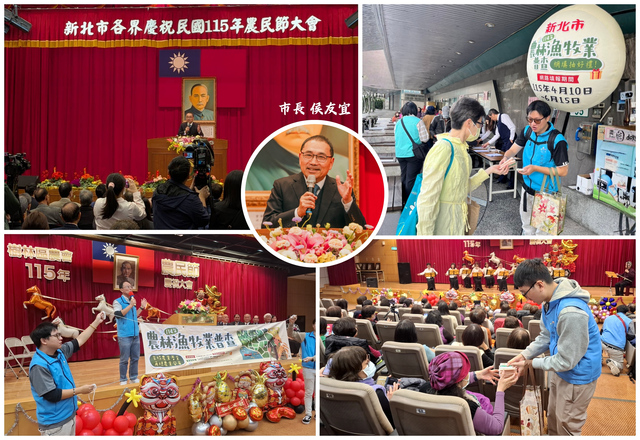 新北市政府(簡稱市府)為加強114年農林漁牧業普查訊息傳播,特於115年2月4日農民節前後於新北市各區農民節慶祝大會進行普查宣導活動,首場由市長侯友宜出席,並請大家一起支持政府普查工作,後續場次則由市府主計處與農業局主管及同仁於活動現場進行宣講、懸掛布幔、張貼海報、展示背包氣球及發送宣導面紙等宣導作業。