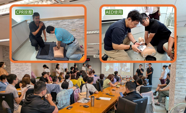最後,在兩位教官的指導下,與會同仁們實際操作CPR按壓及AED使用,透過親身演練加深學習印象,同仁咸認獲益匪淺,亦為本次聯繫會畫下圓滿句點。