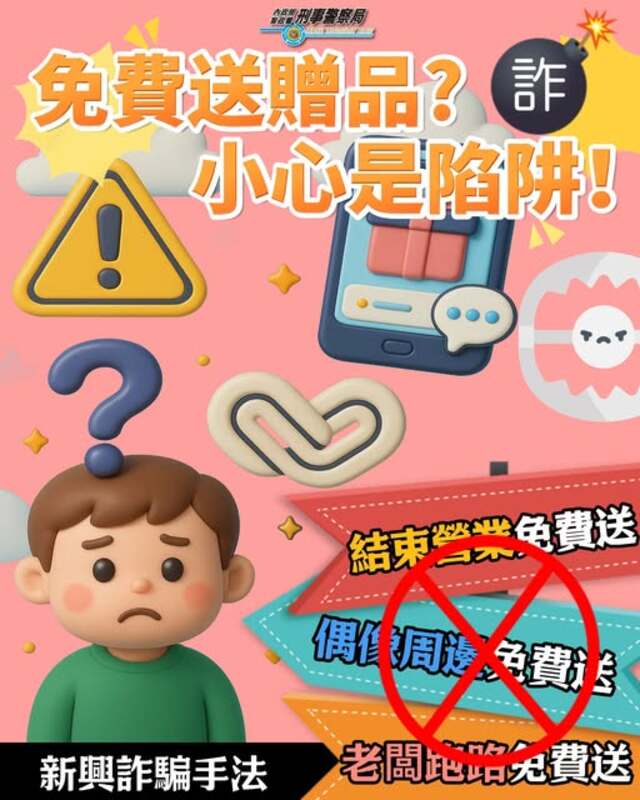 近期,詐騙集團利用Threads等社群平台,發布「免費贈送物品」之假貼文,吸引民眾留言,隨後提供「假賣貨便」連結,後續營造需進行身分驗證之假象,再引導民眾操作網路銀行轉帳。